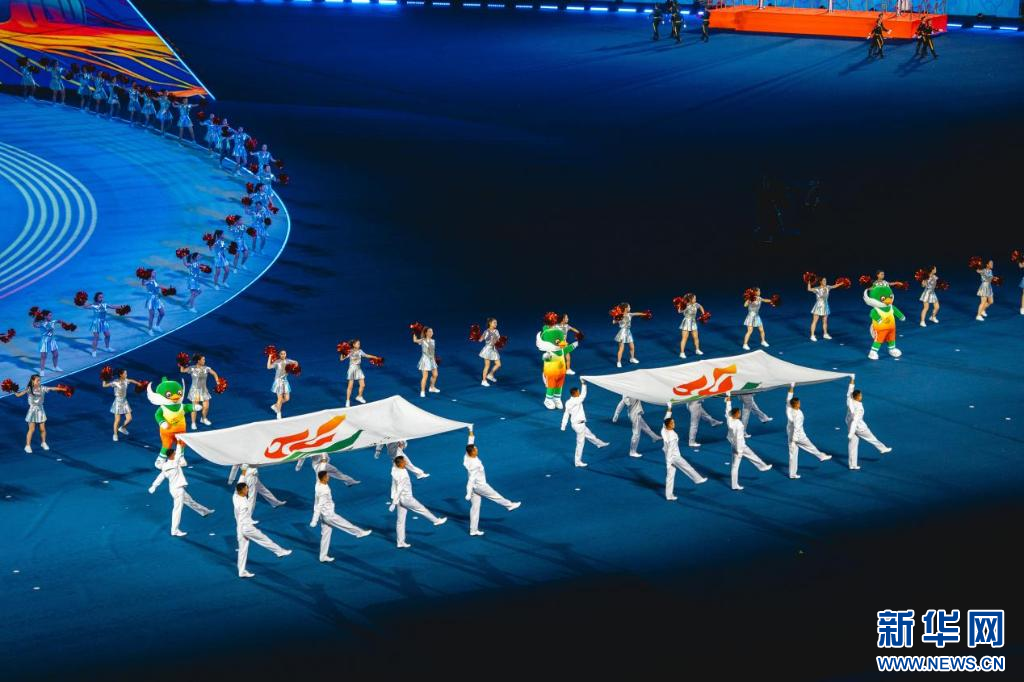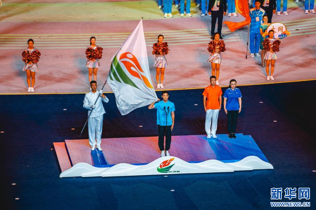??山西省運動會會旗、第十六屆省運會會旗入場。新華網 發(fā)(馬夢迪 攝)