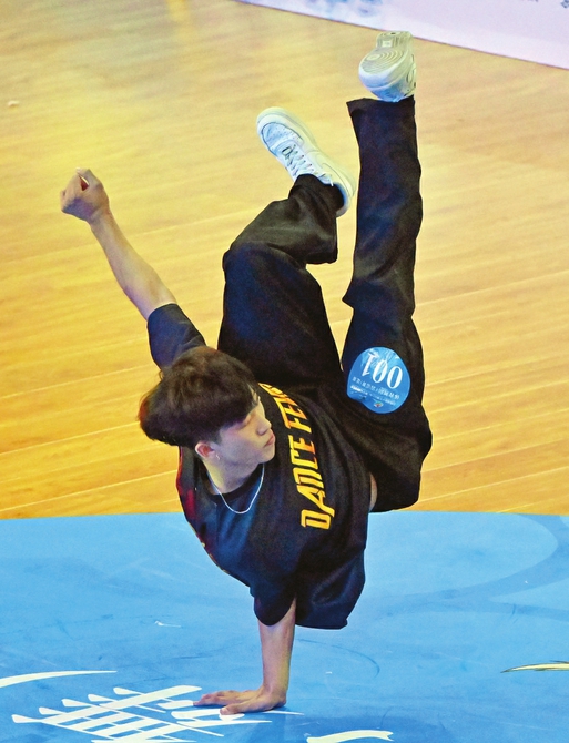 8月17日,省第十六屆運動會體育舞蹈(霹靂舞)大賽吸引眾人眼球。本報記者劉通 本報通訊員王中勛攝