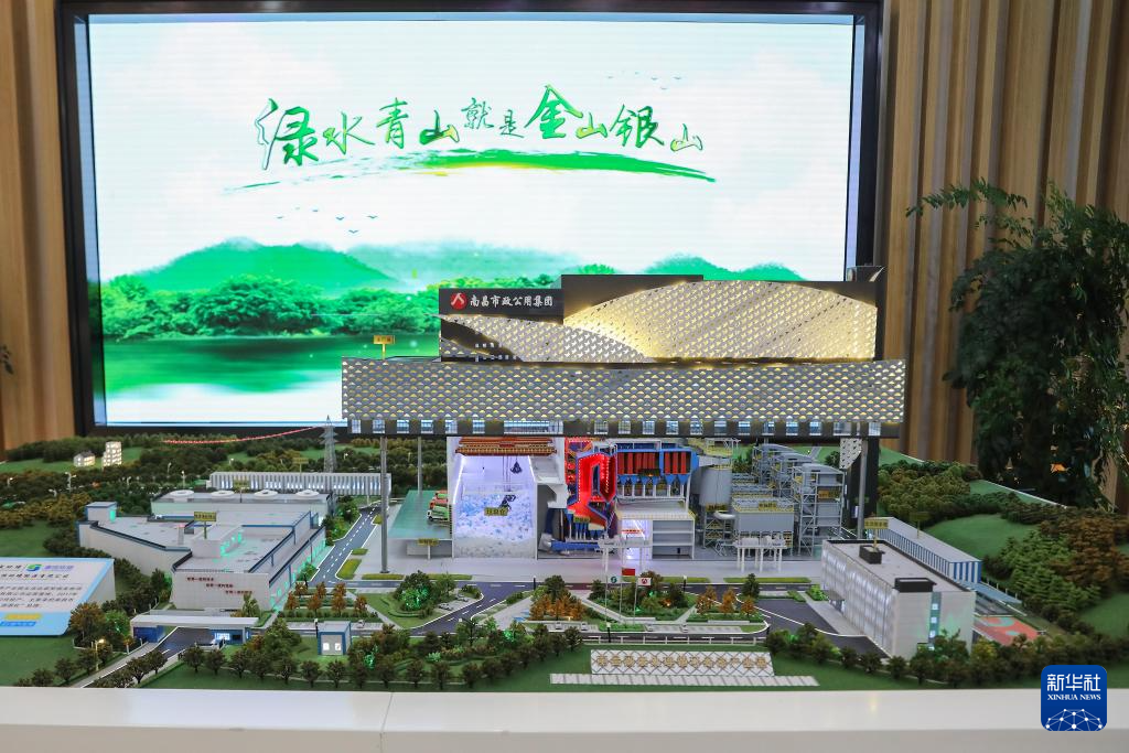 6月29日在江西南昌固廢處理循環(huán)經(jīng)濟(jì)產(chǎn)業(yè)園拍攝的介紹生活垃圾焚燒發(fā)電項目的模型。新華社記者 杜瀟逸 攝