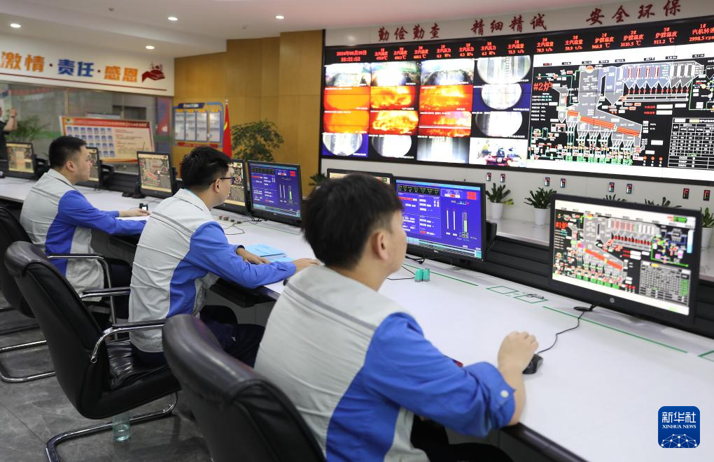 6月29日,在江西南昌固廢處理循環(huán)經(jīng)濟(jì)產(chǎn)業(yè)園,生活垃圾焚燒發(fā)電項目的工作人員在中控室監(jiān)控設(shè)備運(yùn)轉(zhuǎn)情況。新華社記者 杜瀟逸 攝