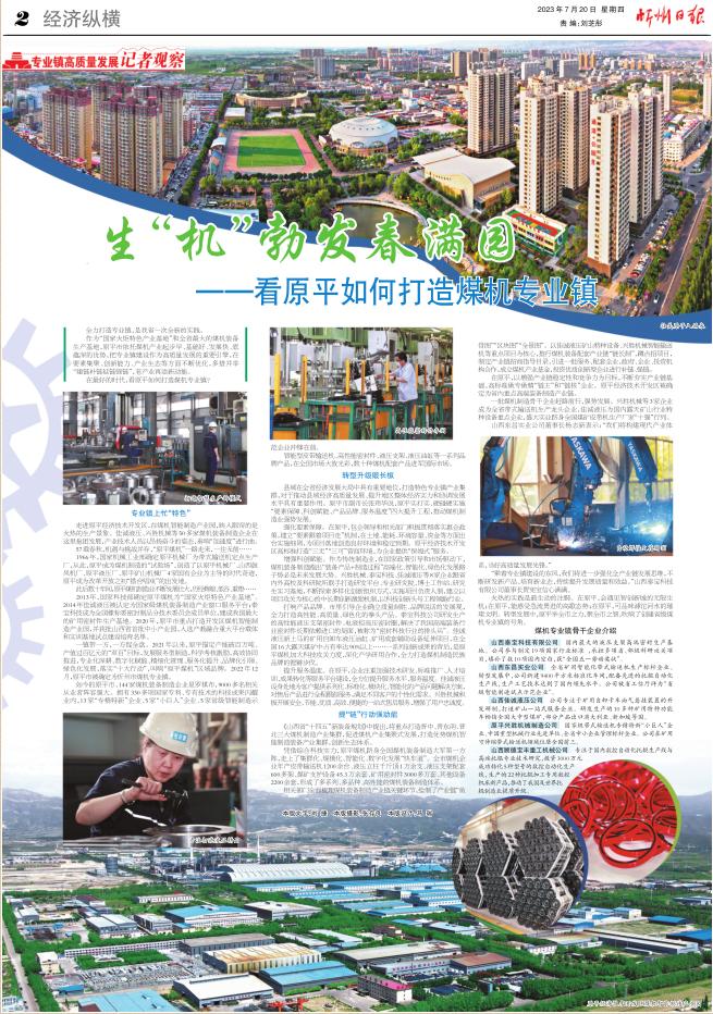 一鎮(zhèn)帶一方,一方促全盤。原平市把煤機(jī)專業(yè)鎮(zhèn)建設(shè)作為發(fā)展制造業(yè)、壯大縣域經(jīng)濟(jì)、推進(jìn)產(chǎn)城融合的重要載體,立足產(chǎn)業(yè)基礎(chǔ)、發(fā)揮比較優(yōu)勢,以骨干企業(yè)為引領(lǐng),在關(guān)鍵技術(shù)上創(chuàng)新突破,持續(xù)提升服務(wù)水平,全力做強(qiáng)特色產(chǎn)業(yè)、做精拳頭產(chǎn)品,打造更多有生命力、有影響力、有競爭力的山西特色專業(yè)鎮(zhèn)品牌。