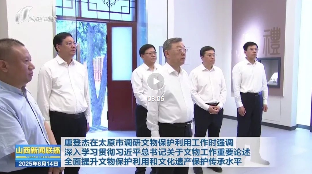 6月13日,省委書記唐登杰在太原市調研文物保護利用工作。他強調,要深入學習貫徹習近平總書記關于文物工作重要論述和對山西工作的重要講話重要指示精神,以強烈的敬畏之心、珍愛之心、責任之心做好文物保護利用和文化遺產保護傳承工作,為建設中華民族現(xiàn)代文明作出山西貢獻。
