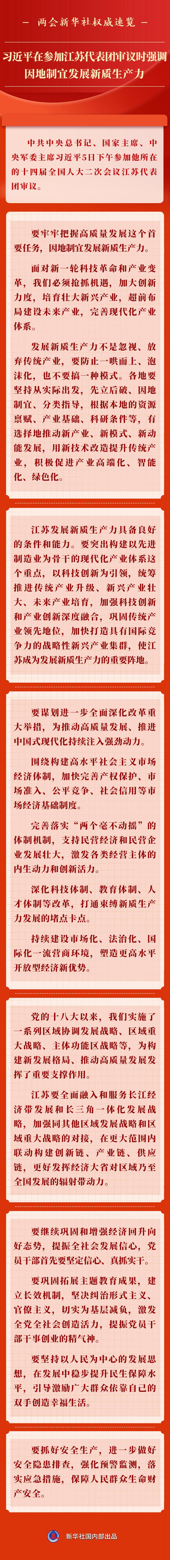 兩會新華社權(quán)威速覽丨習(xí)近平在參加江蘇代表團審議時強調(diào) 因地制宜發(fā)展新質(zhì)生產(chǎn)力