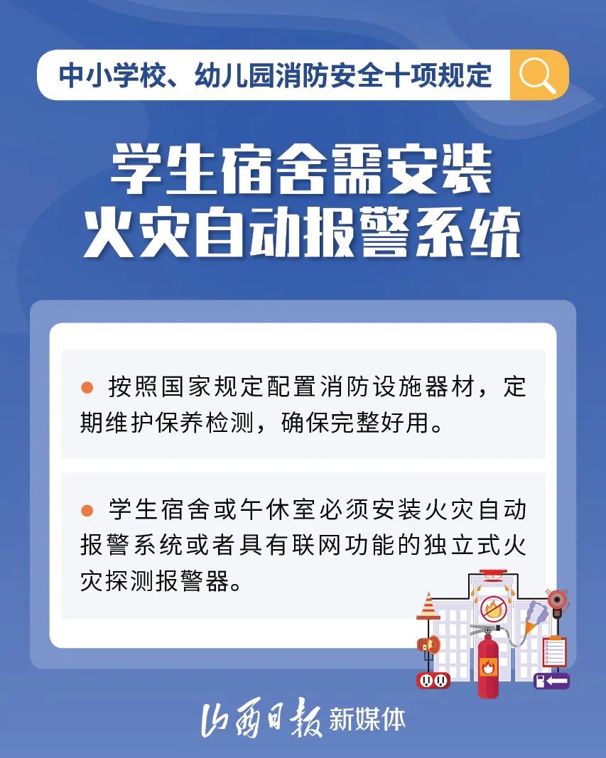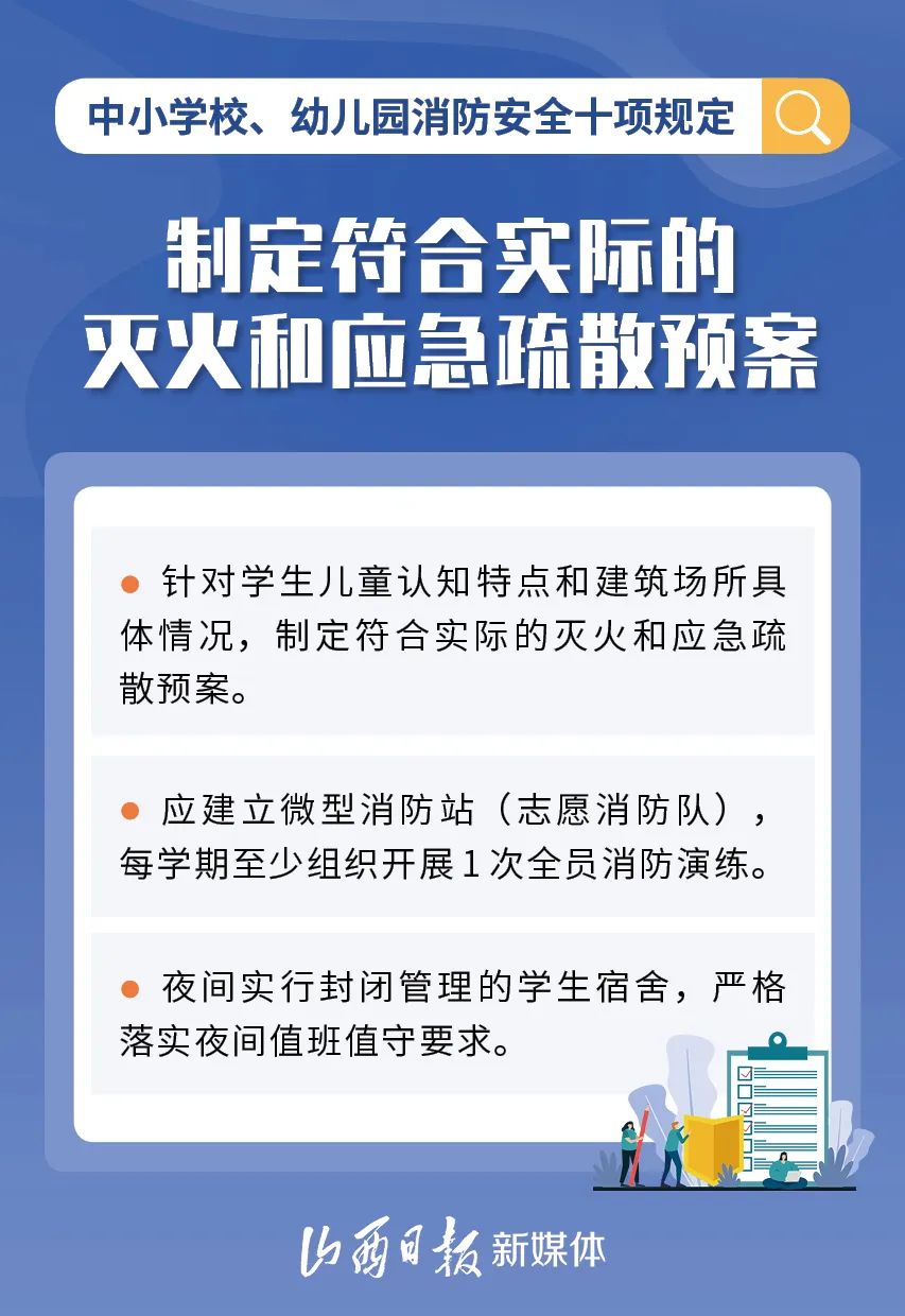 為加強中小學(xué)校、幼兒園消防安全管理,近日,教育部、國家消防救援局研究制定了《中小學(xué)校、幼兒園消防安全十項規(guī)定》,具體規(guī)定內(nèi)容如下。