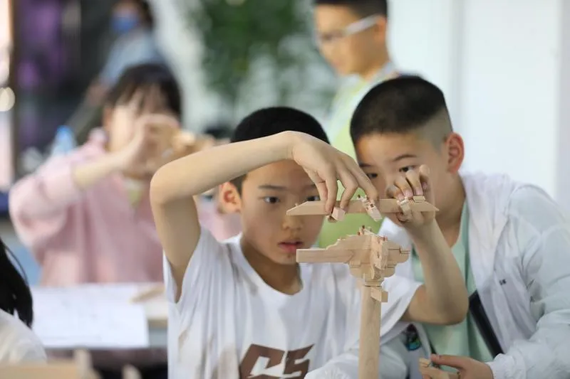 在古建小課堂斗拱搭建中,省博物院老師選取中國古代建筑最關(guān)鍵也是最有特色的斗拱為原型,指導(dǎo)同學(xué)們制作了五臺山佛光寺唐代斗拱模型。不僅可以了解山西古代輝煌燦爛的建筑文化,還可以親自動手,體驗(yàn)唐代斗拱的搭建,感受古代木作匠師的智慧,增進(jìn)對中國古代建筑文化的了解。