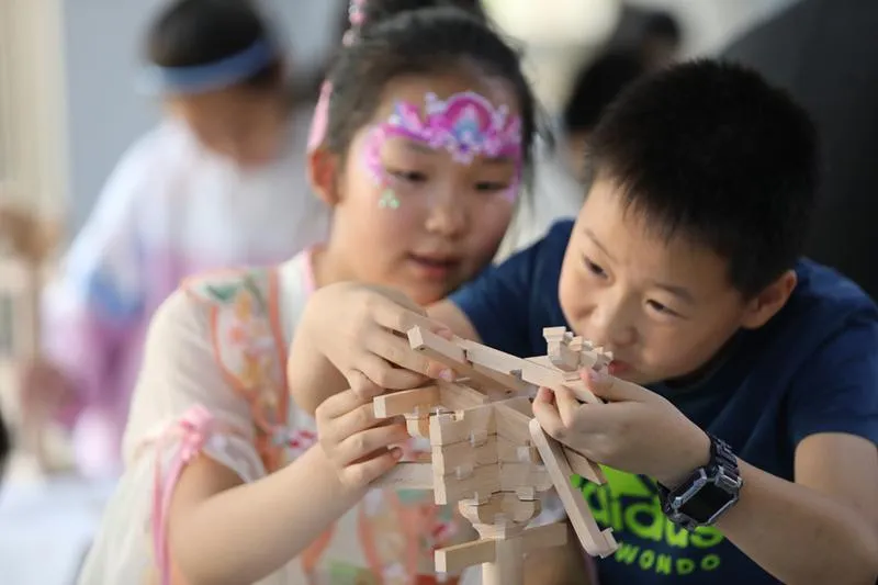 ▲動手體驗(yàn)?zāi)鄺l盤筑