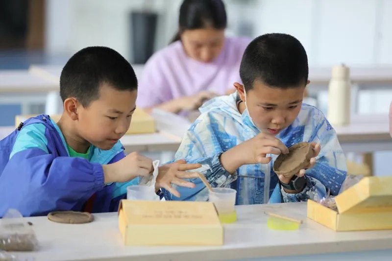 山西日報(bào)新媒體記者吳曉慶報(bào)道 5月2日,山西博物院教育空間,同學(xué)們在老師的指導(dǎo)下動手實(shí)踐泥條盤筑、斗拱拼裝?!拔逡弧惫?jié)假日期間,山西博物院推出“古代生活中的勞動之美”主題教育活動,讓報(bào)名參加的青少年近距離感受古人的勞動智慧,體驗(yàn)勞動之美。