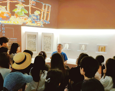 趙國琦為大學(xué)生們講解平陽木版年畫。