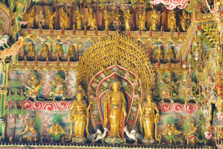 時光流轉近400年后,這些彩塑依舊流光溢彩、璀璨奪目、精美動人、完整如新。展翅飛翔的仙鶴、飛動騰躍的蛟龍、純潔的蓮花、富麗的牡丹,以及各種奇花異草,無不使人浮想聯翩、由衷嘆絕。