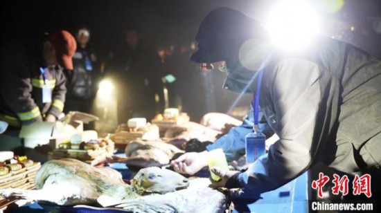 6月8日,工作人員正在做祭敖包之前的準備工作,為羊頭點黃油。 崔博群 攝