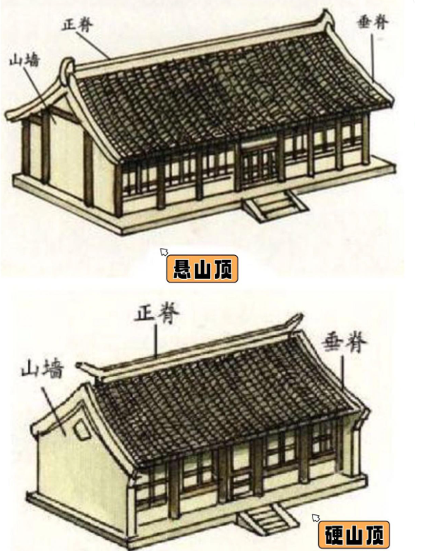 圖為懸山頂和硬山頂?shù)膮^(qū)別 圖片來(lái)源于網(wǎng)絡(luò)