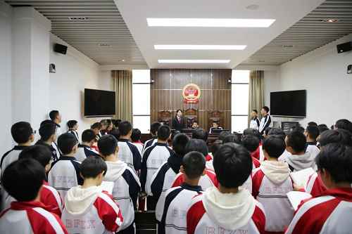 參觀活動結(jié)束后,同學們興奮不已、意猶未盡。此次活動不僅讓學生們了解了忻州中院工作的發(fā)展歷程,感受了法律的神圣和法院的莊嚴,消除了對法院的陌生感和神秘感,更牢固樹立了“法律紅線不可逾越,法律底線不可觸碰”的理念,提高了學生們的法律意識和法治觀念。同學們紛紛表示,回去一定好好學習,做一個知法、懂法、守法的新時代好少年。