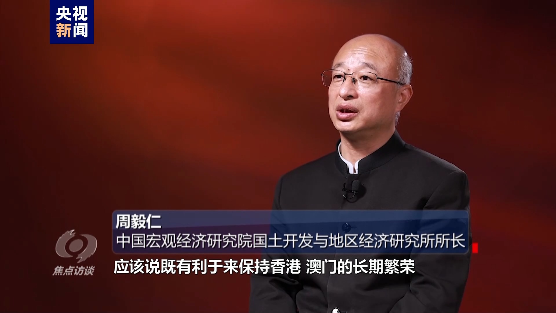中國宏觀經濟研究院國土開發(fā)與地區(qū)經濟研究所所長 周毅仁:推進粵港澳大灣區(qū)共同的發(fā)展,應該說既有利于來保持香港、澳門的長期繁榮,也有利于帶動內地的發(fā)展。