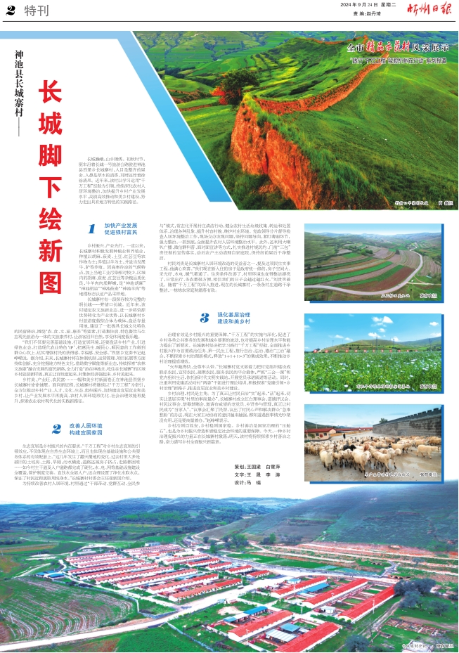 長城巍峨,山鄉(xiāng)錦繡。初秋時節(jié),驅(qū)車沿著長城一號旅游公路駛進神池縣烈堡鄉(xiāng)長城寨村,入目是整齊的屋舍,入鼻是草木的清香,耳畔還伴著徐徐清風。近年來,該村以學習運用“千萬工程”經(jīng)驗為引領,持續(xù)深化農(nóng)村人居環(huán)境整治,加快提升鄉(xiāng)村產(chǎn)業(yè)發(fā)展水平,高質(zhì)高效推動和美鄉(xiāng)村建設,努力走出具有地方特色的實踐路徑。 層層梯田美如畫 張存良攝 1加快產(chǎn)業(yè)發(fā)展 促進強村富民 鄉(xiāng)村振興,產(chǎn)業(yè)先行。一直以來,長城寨村積極發(fā)展種植業(yè)和養(yǎng)殖業(yè),種植以胡麻、莜麥、土豆、紅蕓豆等農(nóng)作物為主;養(yǎng)殖以羊為主,并適當發(fā)展牛、驢等養(yǎng)殖。因高寒冷涼的氣候特點,加上當?shù)毓I(yè)污染相對較少,區(qū)域內(nèi)的胡麻、莜麥、紅蕓豆等雜糧品質(zhì)優(yōu)良,牛羊肉肉質(zhì)鮮嫩,是“神池胡麻”“神池胡油”“神池莜麥”“神池羊肉”等地理標志認證產(chǎn)品采樣地。 長城寨村有一段保存較為完整的明長城——野豬口長城。近年來,該村錨定農(nóng)文旅新業(yè)態(tài),進一步將資源優(yōu)勢轉(zhuǎn)化為產(chǎn)業(yè)優(yōu)勢,以長城寨村鄉(xiāng)村旅游度假綜合體為載體,盤活存量用地,建設了一批極具長城文化特色的民宿驛站,圍繞“農(nóng)、食、文、旅、康養(yǎng)”等要素,打造集住宿、特色餐飲與生態(tài)觀光旅游為一體的文旅康養(yǎng)村,讓游客回歸自然,享受休閑度假樂趣。 “我們不僅要完善基礎設施、打造宜居環(huán)境,還要盤活鄉(xiāng)村產(chǎn)業(yè),引進綠色業(yè)態(tài),打造現(xiàn)代農(nóng)業(yè)特色‘IP’,把惠民生、暖民心、順民意的工作做到群眾心坎上,切實增強村民的獲得感、幸福感、安全感?!绷冶むl(xiāng)黨委書記趙崢嶸說。據(jù)介紹,未來,長城寨村將在體制機制、運營管理、項目拓展等方面持續(xù)創(chuàng)新,充分挖掘地方特色文化,借助數(shù)字賦能等新業(yè)態(tài),持續(xù)探索“農(nóng)林文旅康”融合發(fā)展的富民新路,全力打造“游在神池北、吃住在長城寨”的區(qū)域鄉(xiāng)村旅游新樣板,真正讓百姓富起來、村集體經(jīng)濟強起來、鄉(xiāng)村美起來。 鄉(xiāng)村美、產(chǎn)業(yè)旺、農(nóng)民富……一幅和美鄉(xiāng)村新畫卷正在神池縣烈堡鄉(xiāng)長城寨村徐徐鋪展。面向新征程,長城寨村將繼續(xù)以“千萬工程”為牽引,全方位推動鄉(xiāng)村產(chǎn)業(yè)、人才、文化、生態(tài)、組織振興,加快建設宜居宜業(yè)和美鄉(xiāng)村,讓產(chǎn)業(yè)發(fā)展水平再提高、農(nóng)村人居環(huán)境再優(yōu)化、社會治理效能再提升,探索農(nóng)業(yè)農(nóng)村現(xiàn)代化的實踐新路徑。 羊產(chǎn)業(yè)帶動村民增收致富 張存良攝 2改善人居環(huán)境 構建宜居家園 生態(tài)宜居是鄉(xiāng)村振興的內(nèi)在要求?!扒f工程”對鄉(xiāng)村生態(tài)宜居的引領效應,不僅體現(xiàn)在自然生態(tài)環(huán)境上,而且也體現(xiàn)在基礎設施和公共服務體系的有效配套上?!斑@幾年發(fā)生了翻天覆地的變化,過去村里大多是破舊的土坯房、土路、旱廁,污水橫流,道路還被房子擠占,走路都困難……如今村主干道及入戶道路都完成了硬化,水、電、網(wǎng)等基礎設施建設全覆蓋,管護制度完善。直飲水全部入戶,還合理設置了凈化水取水點,保證了村民近距離取用純凈水?!遍L城寨村村委會主任崔新國介紹。 為持續(xù)改善農(nóng)村人居環(huán)境,村里通過“干部帶動、黨群互動、全民參與”模式,常態(tài)化開展村莊清潔行動,健全農(nóng)村生活垃圾收集、轉(zhuǎn)運和處置體系,治理各種亂象、提升村容村貌、維護村莊環(huán)境。黨政領導分片督導檢查人居環(huán)境整治工作,現(xiàn)場交辦發(fā)現(xiàn)問題,堅持問題導向,緊盯薄弱環(huán)節(jié),強力整治,一抓到底,全面提升農(nóng)村人居環(huán)境整治水平。此外,還利用大喇叭廣播、微信群科普、面對面宣講等方式,扎實推進村規(guī)民約、門前“三包”責任制的宣傳落實,動員農(nóng)戶主動清理自家庭院,保持房前屋后干凈整潔。 村民劉貴是長城寨村人居環(huán)境改造的受益者之一,提及這項民生實事工程,他滿心歡喜?!拔覀儸F(xiàn)在新入住的房子是政府統(tǒng)一修的,房子空間大、采光好,水電、暖氣都通了。住房條件改善了,村里環(huán)境也變得整潔漂亮了,日常出行、務農(nóng)都很方便,相信我們的日子會越過越紅火?!眲①F笑著說。隨著“千萬工程”的深入推進,現(xiàn)在的長城寨村,一條條村莊道路干凈整潔,一棟棟農(nóng)家庭院錯落有致。 有機旱作胡麻花種植示范基地 張存良攝 3強化基層治理 建設和美鄉(xiāng)村 治理有效是鄉(xiāng)村振興的重要保障。“千萬工程”的實施與深化,促進了鄉(xiāng)村各類公共事務的發(fā)展和城鄉(xiāng)要素的流動,也對提高鄉(xiāng)村治理水平和能力提出了新要求。長城寨村堅決把學習踐行“千萬工程”經(jīng)驗、全面推進鄉(xiāng)村振興作為首要政治任務、第一民生工程,推行自治、法治、德治“三治”融合,不斷探索鄉(xiāng)村治理新模式,釋放“1+1+1>3”的集成效果,不斷推動鄉(xiāng)村治理提質(zhì)增效。 “火車跑得快,全靠車頭帶?!遍L城寨村黨支