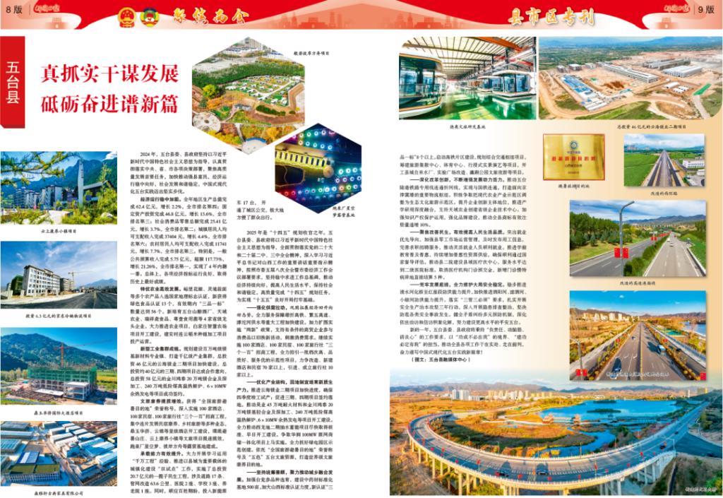 2024年,五臺縣委、縣政府堅持以習近平新時代中國特色社會主義思想為指導(dǎo),認真貫徹落實中央、省、市各項決策部署,聚焦高質(zhì)量發(fā)展首要任務(wù),加快推動強縣富民,經(jīng)濟運行穩(wěn)中向好,社會發(fā)展和諧穩(wěn)定,中國式現(xiàn)代化五臺實踐邁出堅實步伐。