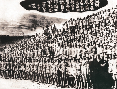 圖10 1938年1月,八路軍第一一五師主力開(kāi)辟晉西南抗日根據(jù)地。圖為羅榮桓(二排左三)、楊尚昆(二排左二)等在孝義。