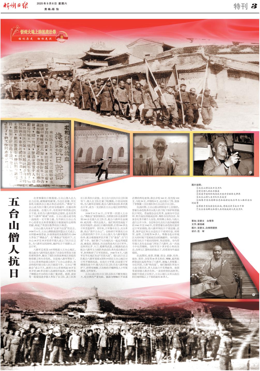 在晉察冀抗日根據(jù)地,五臺山僧人出人出力出錢,獻糧獻槍獻策,為邊區(qū)創(chuàng)建、軍區(qū)各機關提供辦公地點和活動場所,“佛國”五臺山成為抗日健兒的安全隱蔽所、交通站和活動基地。在僧人中,有的保護和營救過抗日干部,有的為八路軍提供過情報,還有的參加了八路軍“破戒”殺敵。五臺山僧眾成為統(tǒng)一戰(zhàn)線的一支可靠力量,為開辟以五臺山為中心的晉東北和晉察冀抗日根據(jù)地作出特殊貢獻,樹起了我國宗教界的抗日典范。