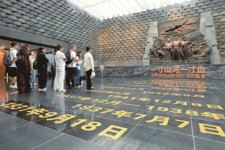 圖②:9月18日,人們?cè)谇秩A日軍南京大屠殺遇難同胞紀(jì)念館參觀(guān)。