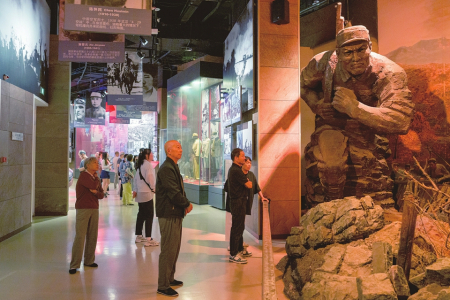 圖⑤:9月18日,游客在云南省騰沖市滇西抗戰(zhàn)紀(jì)念館參觀(guān)“一寸山河一寸血全民族抗戰(zhàn)勝利的滇西篇章”主題展覽。