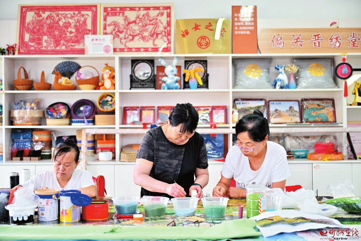 2019年,在偏關(guān)縣政府的支持下,郝果葉辦起了晉繡堂。從基礎(chǔ)針?lè)?,到設(shè)計(jì)圖案、把控品質(zhì),她手把手帶徒傳藝。馬梁村的周雪琴是最早來(lái)學(xué)的一批人中的一個(gè),家中有個(gè)聾啞兒子需要照顧,日子過(guò)得緊巴巴。初學(xué)時(shí),粗糙的手指捏不住繡花針,如今靠刺繡月入近3000元,“比種地輕快,還能守著娃,這雙手讓她有了底氣?!蓖ㄟ^(guò)開展專業(yè)培訓(xùn),郝果葉幫助300多名婦女學(xué)習(xí)傳統(tǒng)手藝。晉繡堂成了她們“第二個(gè)家”,在這里,針尖挑起的不只是絲線,還有挺直的腰桿和亮堂的明天。