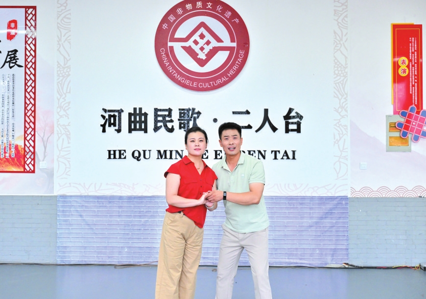 走進(jìn)河曲縣白樸公園,一段清亮婉轉(zhuǎn)的唱腔便隨風(fēng)入耳——河曲縣民歌二人臺(tái)藝術(shù)團(tuán)演員鄔光正和同事們?nèi)橥度?,打磨大型非遺音樂劇《大河長歌》。他額角滲著細(xì)密的汗珠,當(dāng)唱到“好兒女今日唱長歌,勝過了前輩了不得”時(shí),突然停了下來,對(duì)搭檔說:“再來一遍,剛才那口氣沒頂滿?!边@份對(duì)細(xì)節(jié)的較真,藏著他對(duì)二人臺(tái)藝術(shù)最樸素也最深厚的敬畏。