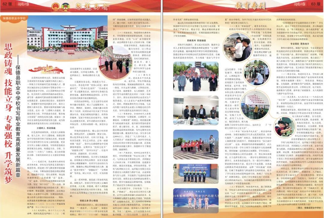 在晉西北的黃河之濱,保德縣這塊蘊(yùn)含著深厚歷史底蘊(yùn)與蓬勃生機(jī)的土地上,一所致力于培養(yǎng)新時(shí)代技術(shù)技能人才、服務(wù)區(qū)域經(jīng)濟(jì)社會(huì)發(fā)展的中等職業(yè)學(xué)?!5驴h職業(yè)中學(xué)校,正以其鮮明的辦學(xué)特色、扎實(shí)的育人成果和昂揚(yáng)的奮進(jìn)姿態(tài),譜寫著一曲新時(shí)代職業(yè)教育的精彩華章。在保德縣委、縣政府頂層設(shè)計(jì)、堅(jiān)強(qiáng)領(lǐng)導(dǎo)下,保德職中堅(jiān)持黨的教育方針,落實(shí)立德樹人根本任務(wù),緊密對接國家戰(zhàn)略與地方需求,走出一條“立德樹人有溫度、技能培養(yǎng)有力度、升學(xué)就業(yè)有高度、服務(wù)地方有深度”的特色發(fā)展之路,探索出一條具有自身特色的高質(zhì)量發(fā)展之路,成為保德教育高質(zhì)量發(fā)展全局上的重要版塊。